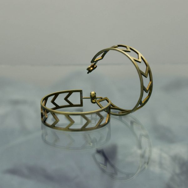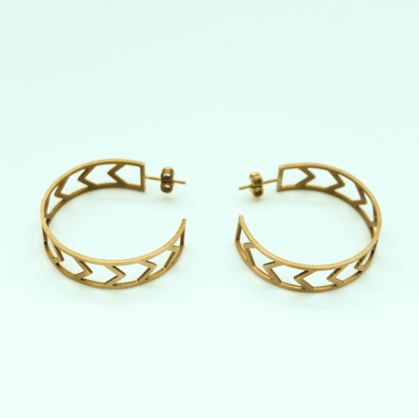 Estos aros grandes con cierre de tuerca son unos pendientes grandes y ligeros, con calados de formas triangulares en su interior.